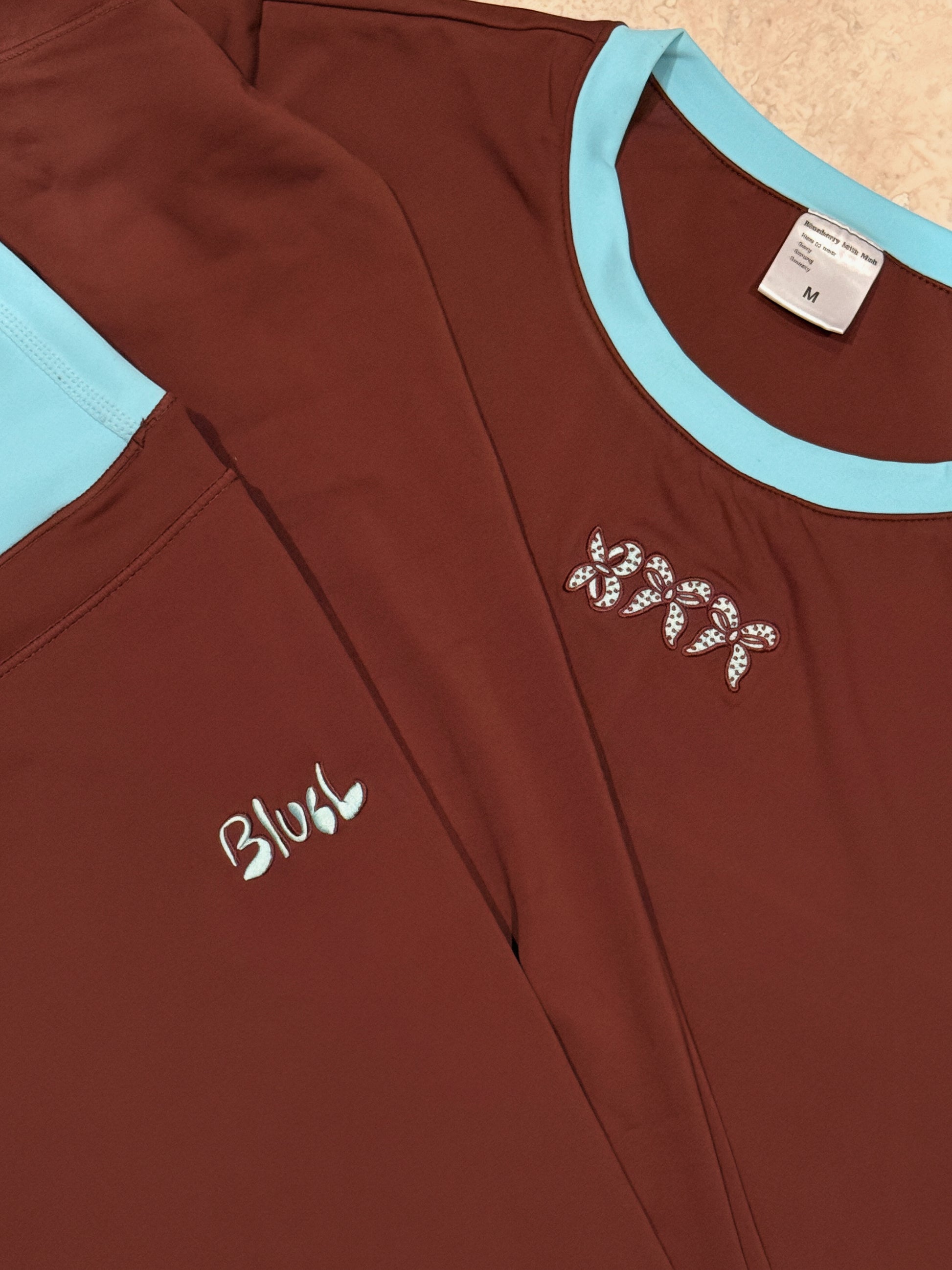 The Truffle Kiss Top comes in a rich brown and teal colourway, and a delicate embroidered logo, designed to look like bows, adds a signature feminine touch, blending sweetness with strength. It’s grounded, bold, and versatile: perfect for any setting or activity.